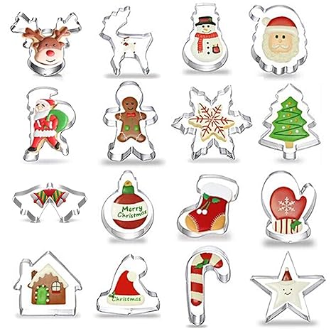 Gizhonme Christmas Cookie Cutter 16 Stainless Steel Xmas Holidays Cookies Molds For Making Muffins Biscuits Sandwiches Christmas Tree Christmas